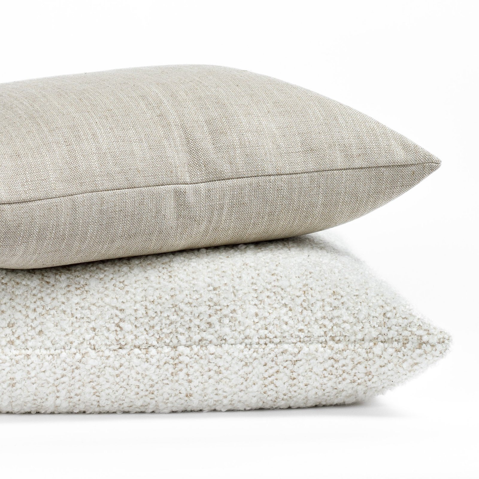 Introducing the perfect foundational pillow that combines the timeless beauty of Belgian Linen with high-performance durability. With its hearty, slubby weave in an ideal oatmeal shade, this layering piece will bring a natural, earthy comfort to your decor while exuding an understated elegance.