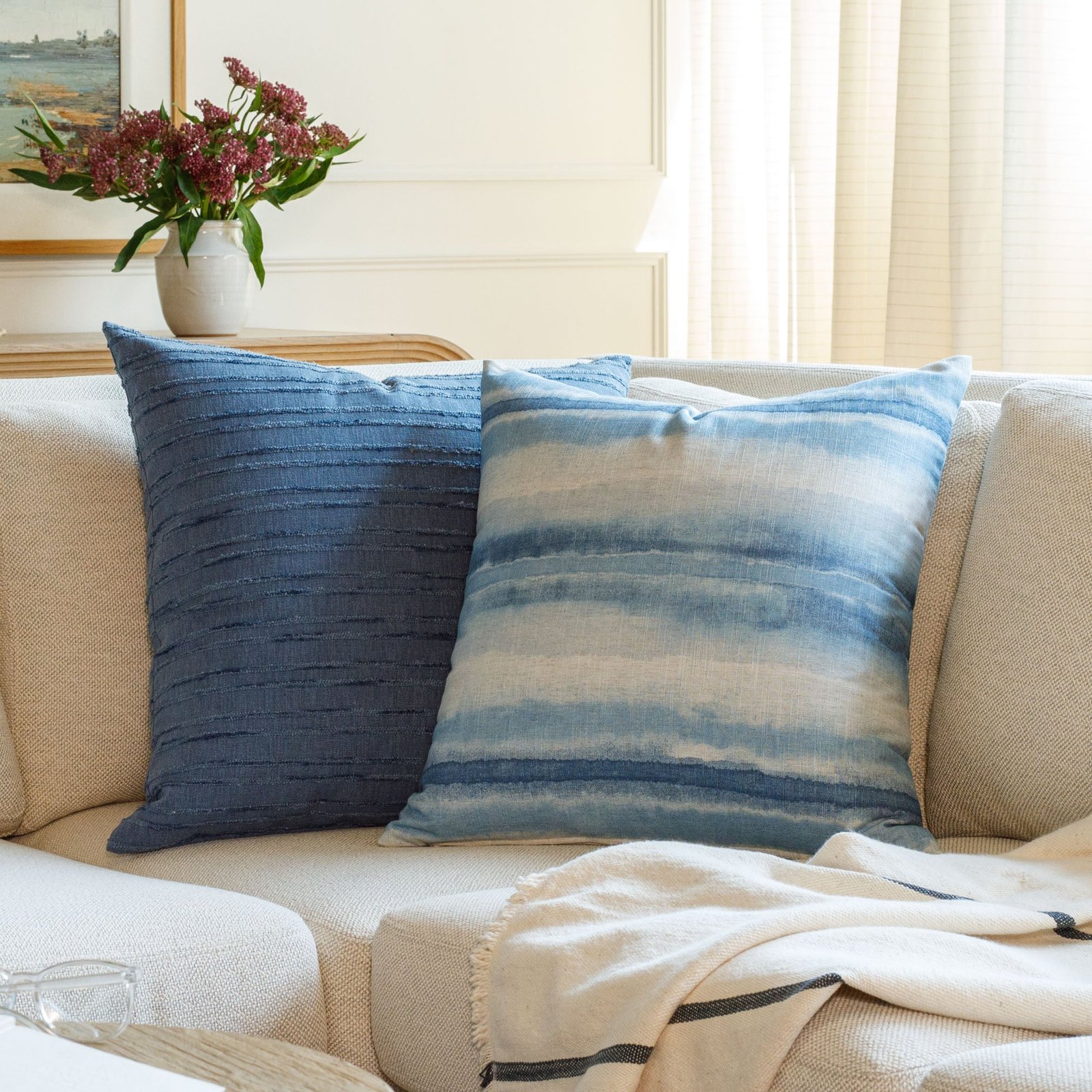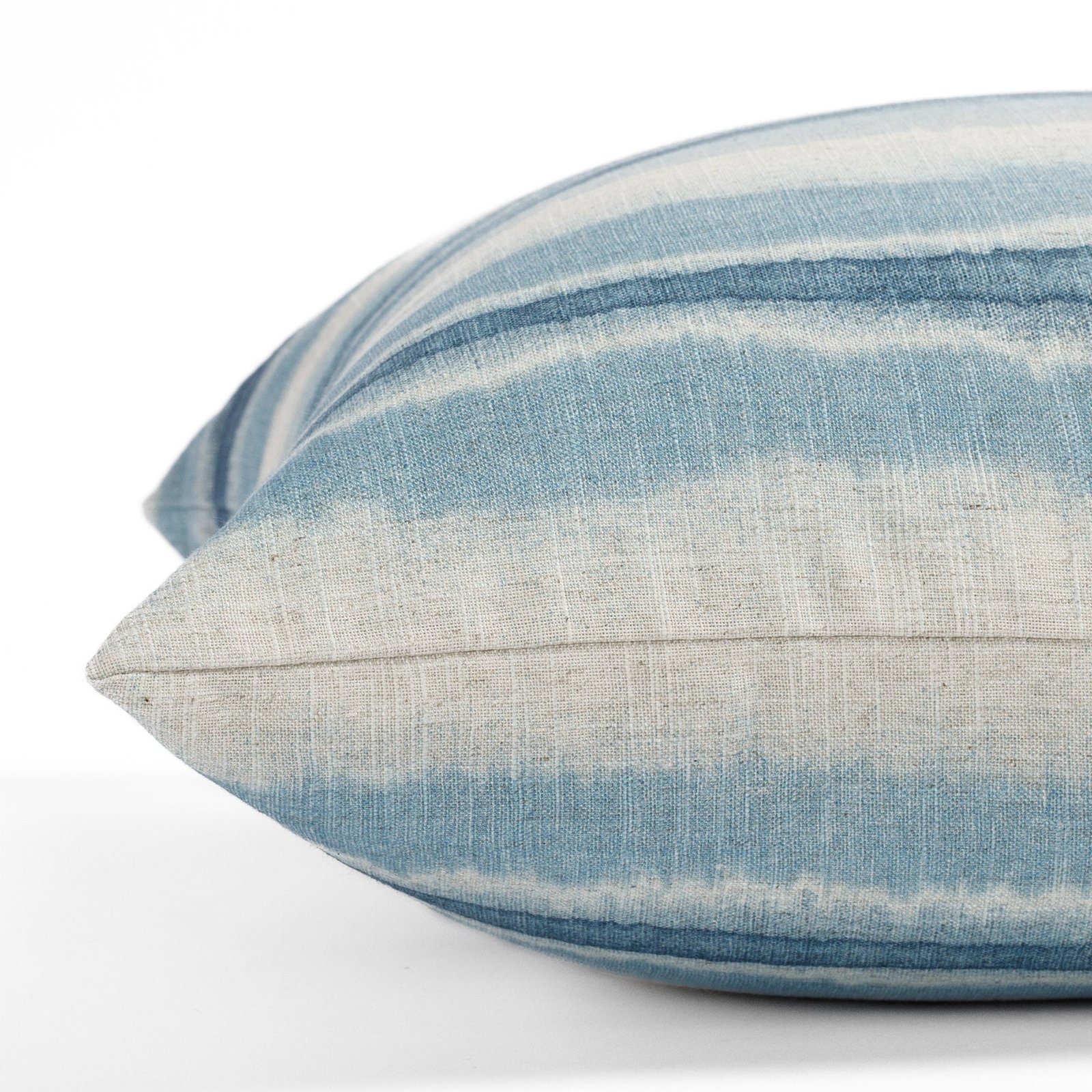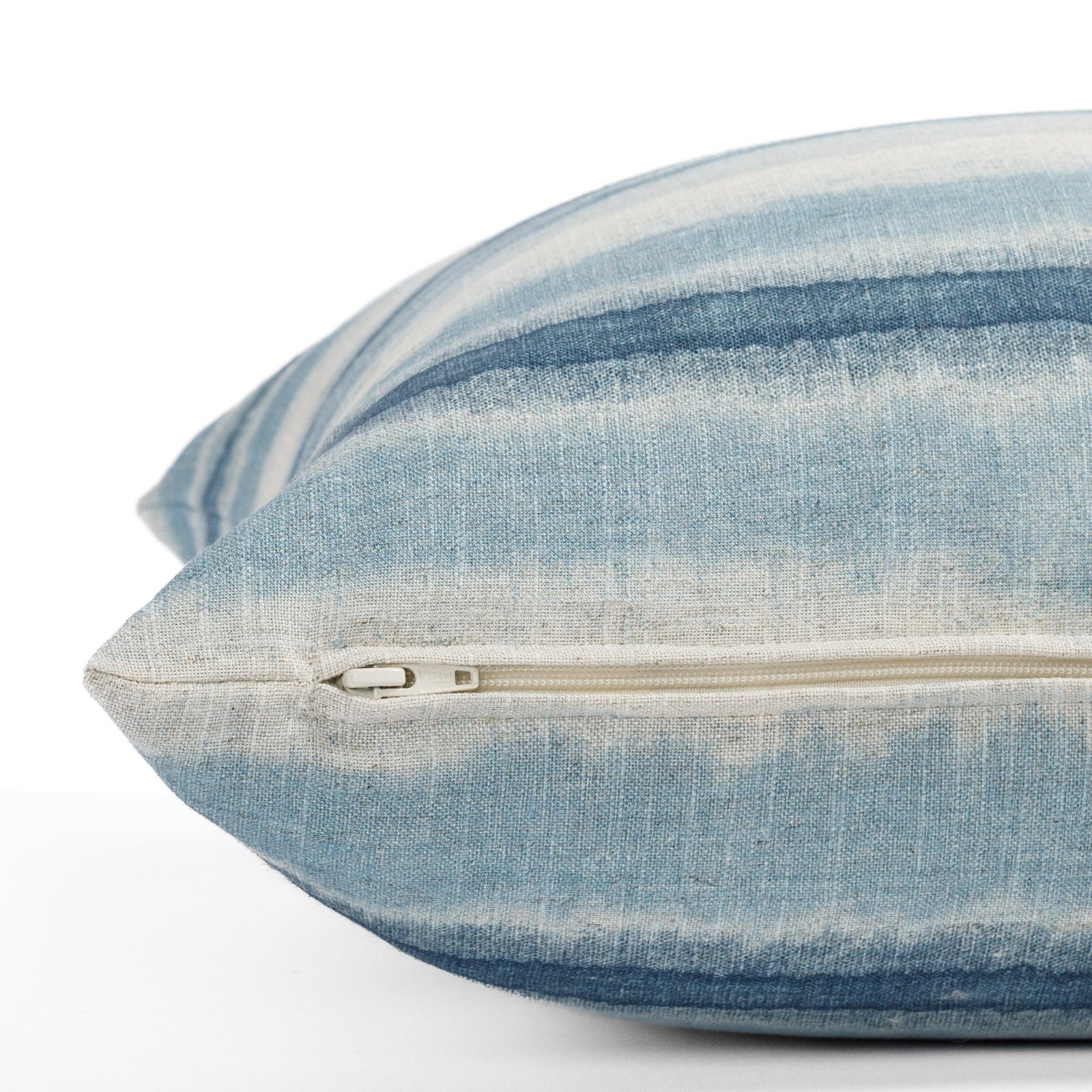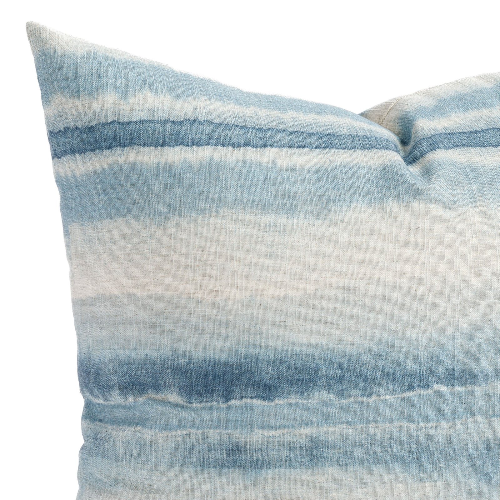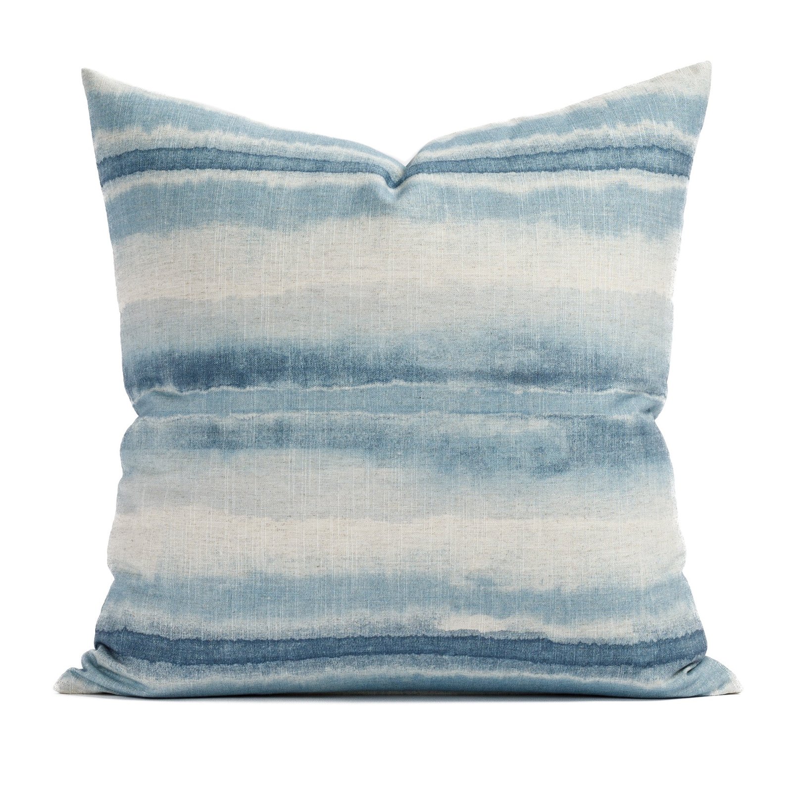 The blue painterly ombre stripes give this pillow a relaxed yet refined coastal feel.